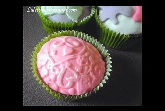 - Collez le cercle sur le cupcakes en le lissant avec le dos d'une cuillère