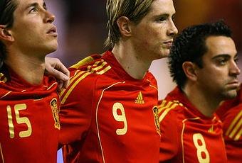 Commencons par les espagnols qui seront (quasiment) tous sur la pelouse à commencer par leur duo d'attaquants Fernando Torres / David Villa ... on verra aussi les doublettes du FC Barcelone, Xavi / Andres Iniesta au milieu et Carles Puyol et Gérard Piqué en défense ... et si il n'y avait que ça ...
