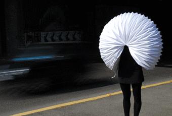 Etonnant accessoire que ce kit en papier et tissu polyéthylène destiné à construire un espace intime en toute circonstance. Le projet, qui se décline en quatre accessoires distincts, est le fruit de l’imagination de Gloria Pizzilli, Arianna Petrakis, Ilaria Pacini et Adèle Bacci. J’ai beaucoup apprécié la poésie de l’accessoire, qui me fait beaucoup penser à la combinaison pour dormir n’importe où.