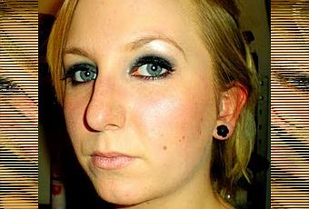 Un aplat de pigment noir carbone sur la paupière mobile sur une épaisse couche de "zéro" d'Urban Decay. Puis le pli de la paupière en gris foncé mat de Sephora, et du blanc grisé sous le sourcil. Un deuxième trait de crayon "zéro" au ras des sourcils, du mascara à outrance, des paillettes noires, et voilà le travail.