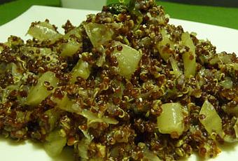 Le quinoa, tout comme l’épeautre ou le blé, peut se préparer « façon risotto ». Avec quelques algues émiettées et un légume, on obtient un plat équilibré avec un petit goût d’atypique. Et contrairement à ce qu’on pourrait croire à première vue, l’algue, le fenouil et le parmesan se marient particulièrement bien…