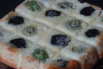 Déposer en alternant 1 truffe et une tranche de kiwi dans chaque carré en les enfonçant légèrement