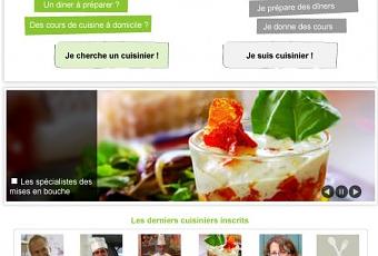 - Toujours dans le module central, un diaporama renvoie vers les thèmes principaux proposés par les cuisiniers. Il évoluera donc bien sur au fur et à mesure des inscrits sur le site. Par exemple les photos pourront renvoyer à une liste de cuisiniers proposant des cours de confiture, de macarons, la préparation de diner à domicile, des cours de cuisine créole ou africaine etc… C’est un peu la vitrine reflet de la richesse du contenu du site en terme de services proposés ( que nous espérons !! )