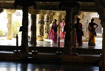 © Bollymages. Padmanabhapuram Palace, décembre 2005Non loin de Kanya Kumari, au Tamil Nadu, s'élève le palais des maharajas de l'ancien Etat princier du Travancore, construit au XVIe siècle. Les visiteuses indiennes ont l'air de poser pour la photo, ce qui n'est pas le cas.