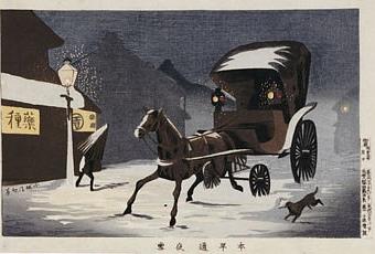 Soir de neige à Honcho Street de Kobayashi Kiyochika
