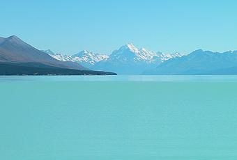 Autre particularité de la région : la couleur de l’eau des lacs et des rivières. Comme vous avez pu le constater sur ma photo de une, le bleu de l’eau est très particulier, clair et laiteux à la fois. Cette couleur s’explique par la présence de farine glaciaire dans l’eau, c’est-à-dire de particules en suspension issues des glaciers voisins. On retrouve cette particularité dans les lacs Pukaki, Tekapo et Ohau, à deux pas de Mount Cook, le plus haut sommet de Nouvelle-Zélande.