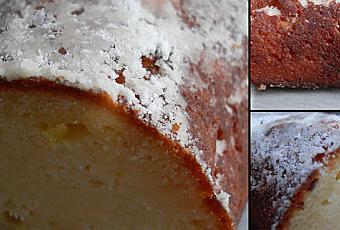 Ingrédients : - 2 œufs, - une boite de ricotta, - 75 g de beurre - 120 g d’amandes en poudre, - 60 g de sucre - 50 g de farine à levure incorporée, - le jus d’un gros citron, - 1 c à s. de zestes de citron - 4/5 gouttes d’essence d’amande amère, - sucre glace pour décorer.
