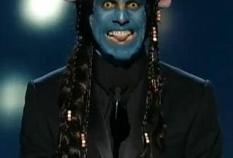 Avec sa peau bleutée, sa longue queue et ses larges oreilles en évidence, le comédien s'est mué en Na'vi, personnages du film fantastique de James Cameron. Avant de remettre le prix, il s'est d'abord exprimé dans la langue de Pandora, déclenchant sans tarder les rires du public. Il a alors poursuivi : « Ca avait l'air d'être une meilleure idée pendant les répétitions... »