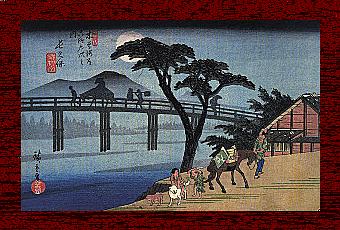 Étonnant aussi par son art de la perspective : toujours le spectateur prend place dans le tableau, dans un premier plan marqué par un pan de mur, une branche de cerisier, la pile d'un pont, parfois même par un bout de raquette, comme si le spectateur jouait au volant... Le reste du paysage s'étend au loin, dans une profondeur lumineuse et nette.