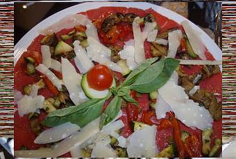 Une assiette - généreuse il est vrai - de carpaccio de boeuf et légumes grillés pour 17€ et un verre de Montepulciano des Abbruzzes à 5€, on ne sait pas où ils ont baissé la TVA, ceux-là !