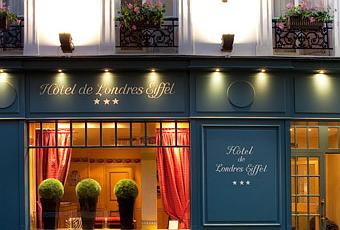 Au Londres Eiffel, on vit un véritable conte de fée fruité : les tons framboise et citron sont revigorants et gourmands ! L’hôtel ne dispose que de 30 chambres, dont certaines sont actuellement en rénovation. Chic sans être guindées, elles offrent des murs ornés de tissus, un style très parisien qui plait particulièrement aux Américains. Certains de ces tissus représentent des partitions de musique classique, d’autres symbolisent la flore ou reproduisent les plus vieux monuments de Paris.