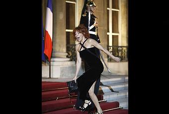 Chute à l’Elysée. Faux pas pour Mylène Farmer, reçue à au palais présidentiel mardi soir pour le dîner en l'honneur de Dmitri Medvedev, Président de la Russie. La chanteuse s'est pris les pieds