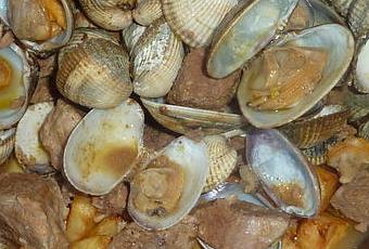 Un délicieux plat portugais que j'ai eu l'occasion de déguster chez des amis il y a quelques années. Je viens de découvrir la recette sur les blogs "Tasca de Elvira" et "Viva Portugal", et j'ai fait un petit mixage des deux . Cela surprend de mélanger le porc et les coquillages, mais le résultat est sympa, et j'ai personnellement bien apprécié.