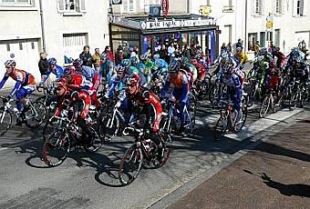 Le peloton dans la traversée de Saint-Aignan. Quelques minutes plus tard, Paris - Nice aura quitté le Loir-et-Cher.