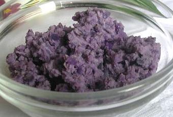 Ces pommes de terre sont idéales pour égayer un plat et surprendre les convives par sa chair violette, on peut les servir avec d'autres purées de légumes pour marier les couleurs.