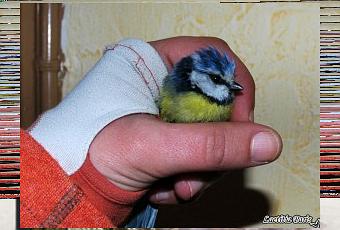 J’étais sortie pour relever le courrier et en remontant les marches pour retourner au chaud, je vois au sol… sur la neige… immobile… une mésange bleue. Je m’approche pour voir si elle était encore vivante… OUI !! Super… mais elle est complètement gelée ! Je peux bien sur pas la laisser là… c’est la mort assurée. Alors je l’ai emmenée dedans… au chaud !