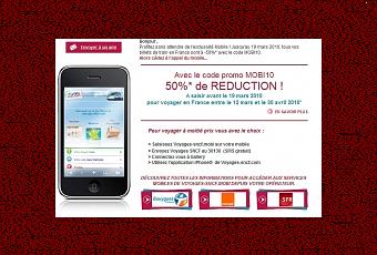 "Cédez à l'appel du mobile" : oxymore ou tautologie ? Voilà donc la SNCF en mal de nous faire pratiquer l'achat de billet via nos smartphones avec une belle affaire pour les propriétaires des outils : 50% de réduction pendant 48 jours.