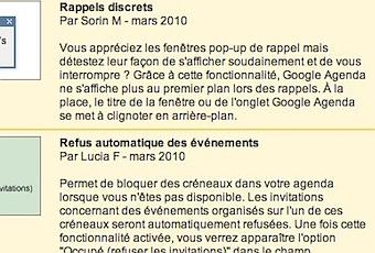 Trois nouvelles fonctionnalités ont été ajoutées à la section «Labs» de Google Agenda: les icônes Agenda, les rappels discrets et le refus automatique des événements. Curieusement, uniquement les deux dernières fonctionnalités sont présentes sur la version française.