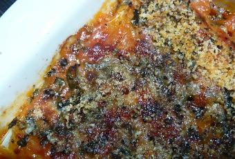 Mercredi soir, régal avec un gratin de cannellonis ! Un valeur sûre du congélateur : des cannellonis maison de la "mamma" avec une farce (veau + porc) finement hachée + de la sauce tomate en bonne quantité pour assurer le moelleux + parmesan + basilic (surgelé et cuit donc un peu moins parfumé que frais bien sûr), tout cela gratiné au four.