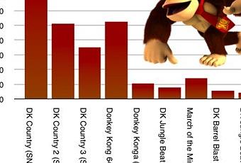 Depuis l'immense succès de l'épisode Donkey Kong Country sur Super Nintendo, les exemplaires écoulés sont en constante baisse et le passage aux 128 bits a visiblement fait mal au singe en cravate puique seuls deux titres émergent à plus d'un million d'unités vendues.