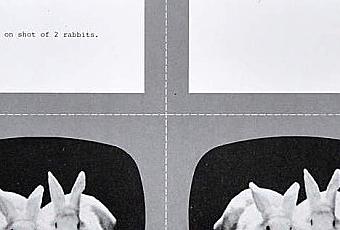 Fond noir. Deux lapins blancs cadrés serré. 10 secondes de silence. Puis une voix-off sobre :