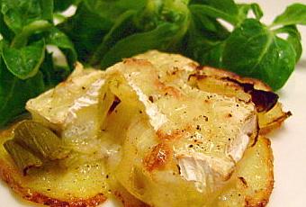 galettes poireaux camembert, dont le fond serait fait de lamelles fines de pommes de terre…