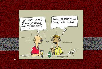 Europe Ecologie va-t-il faire l'arbitre pour le second tour ? (pareil, selon nos sondages maison, la liste écolo flirtera avec les 4%). Une chose est sûre, l'UMP va se vautrer. Et Vergès triompher au premier tour. Et au deuxième aussi, que ce soit avec le PS, ou avec Magamootoo, ou avec n'importe qui, sachant que Free Dom, la force d'appoint du PCR, ne représente plus rien. Reste à savoir quelles seront les enjeux des tractations du second tour. Il sera bien évidemment question du tram train. Mains surtout des places. Des voitures de fonction. Des téléphones portables. Non, on ne ne fait pas du Tillier), lui-même fort amateur d'avantages en nature (on lui explique quand il veut) , mais c'est malheureusement une réalité : on achète bien les seconds couteaux...