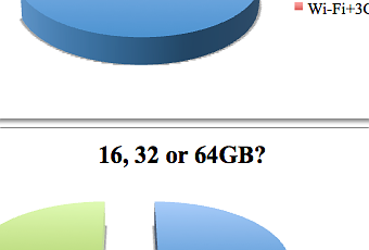 Il semblerais que les premiers chiffres soient tombés: 120 000 iPad vendus en un jour, d'après les estimations la version Wifi uniquement est largement en tête (sûrement à cause de la date de sortie de la version 3G), par contre coté capacité, les ventes sont parfaitement équilibrées.