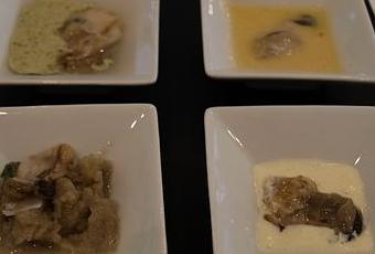 Je vous avais parlé de ce plat que j'ai mangé il y a une quinzaine de jours chez un ami. Je vous en révèle aujourd'hui les secrets. Pour trois déclinaisons sur quatre, vous trouverez ICI tout ce qu'il vous faut (extrait du magazine Thuriès, recette de Philippe Vétélé). Pascal a remplacé la deuxième (chaud-froid de chou-fleur) par une recette d'Alain Passard que voici :