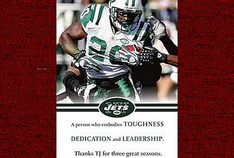 L'équipe achète une annonce dans un journal de Kansas City pour louanger Thomas Jones et Rex Ryan se fait "brocher" l'estomac... -Les résidents de Kansas City ont su être étonner de voir l'image ci-haut dans l'édition d'hier du Kansas City Star. Les Jets ont en effet décidé de payer une annonce pleine page pour vanter les mérites de leur ancien porteur de ballon Thomas Jones, maintenant avec les Chiefs. La pub vante le leadership, le dévouement et le toughness de Jones et c'est "signé" Rex Ryan, Mike Tannenbaum et les Jets. Cette annonce est d'autant pleus étrange car les Jets ont refusé de payer 5 M$ sur deux ans à Jones avant de donner un montant légèrement supérieur à LaDainian Tomlinson. LDT n'est pas exactement reconnu pour les qualité reconnus ci-haut, ses marques de commerce étant pkutôt faire la baboune sur les lignes de côté et être toujours blessé en séries. Tout ça sent l'opération de marketing pour faire oublier une mauvaise décision...