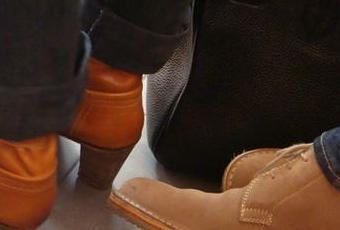 En patientant pour un défilé, j'ai pris le temps de regarder les autres. J'aime bien cette photo qui nous présente les bons détails de la saison : le bas du jean roulé que ce soit un jean boyfriend ou un pantalon cargo, de jolies boots en cuir camel pour casser l'aspect strict du noir, une paire de desert boots ou des clark's, le modèle phare de la saison, l'incontournable jean slim et bien sûr le birkin en cuir noir, intemporel et toujours moderne.