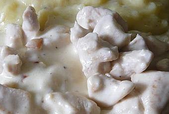 2 filets de poulet 2 cuillères à soupe d'huile d'oliveLe quart d'un oignon1 citronCrème fraîcheSel, poivre