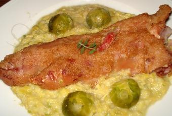Pied de Porc pané sur lit de Purée de Choux Bruxelles