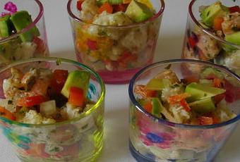 Pour accompagner une téquila sunrise lors d'un repas mexicain par exemple, je vous propose ces petites verrines que j'ai eu plaisir à faire mais surtout à déguster. Elles ont bien plu alors je ne peux que vous les conseiller !
