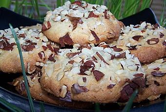 Faire de petites boulettes de pâte et les passer dans le concassé d'amandes.