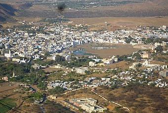 Vue générale de Pushkar depuis le temple de Savitri, au sommet de la colline.Nous voici à Pushkar, petite ville célèbre par sa foire aux chameaux. La chaleur est revenue, soleil et température agréable dans la journée, nuits encore fraîches donc plaisantes. Chacun profite du soleil et de la douceur du printemps à sa façon.