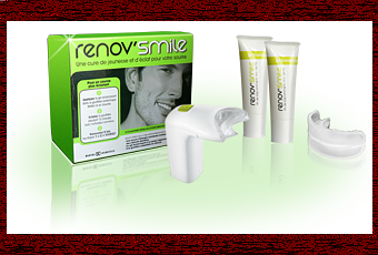 Né de la rencontre entre professionnels de la cosmétique et chirurgiens-dentistes, Renov’Smile est l’alternative à l’éclaircissement dentaire en cabinet. Gel éclaircissant et gouttière souple sont les accessoires qui permettent de retrouver en 2 jours blancheur et éclat. L’activateur lumineux, également fourni, dégage une rayonnement puissant qui permet d’optimiser l’action du gel éclaircissant.