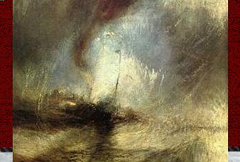 Autour de 1800, alors qu'il rejoint les rangs de la Royal Academy, Turner ne cache pas encore ses dettes à l'égard de ses aînés, bien au contraire. Une part de sa clientèle retrouve à travers ses tableaux, et à bon compte, le charme, devenu inaccessible financièrement, de la peinture d'antan. Et très vite, quelques amateurs éclairés vont commencer à croire en lui et le libérer de la nécessité d'imiter les modèles chers à ses prédécesseurs. Le premier de ses mécènes sera William Beckford, qui jouit d'une immense fortune, et rédige des contes fantastiques dans son château néogothique. Il va payer le prix fort quelques oeuvres de toute première importance, dont " La cinquième plaie d'Egypte", où l'artiste ne craint pas de rompre l'échelle des perspectives et d'user des contrastes de lumière. Il s'applique à traduire son romantisme en déséquilibrant volontairement la représentation des choses, agitant ses toiles d'un délire extatique et organisant ainsi la mise en scène d'un monde soumis à la violence la plus extrême. Désormais plus rien ne l'arrêtera. A trente-cinq ans, il est devenu le peintre du vertige, du terrible, d'un chaos somptueusement orchestré. Deux séjours prolongés à Venise, la cité crépusculaire des doges, en 1833 et 1840, vont lui permettre de rompre les ultimes amarres et nourrir son imagination. Autant qu'à ses exigences personnelles, il entend coller aux attentes des nouveaux touristes, lecteurs de Shakespeare et de Byron. Progressivement, il substitue au motif lui-même son rayonnement solaire ou sa lente désagrégation. Ruskin, qui sera son plus fervent avocat, écrira : " Pour qu'une oeuvre complètement terminée atteigne à la grandeur parfaite, il y faut quelque chose d'indistinct ".