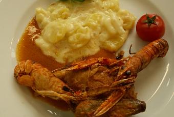 2- Prendre un rondeau et y faire revenir le concassי de langoustine א l’huile d’olive.