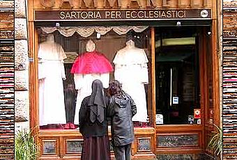 Gammarelli est une historique maison romaine qui, depuis 1790, habille la cité vaticane. Evêques, cardinaux et le Saint-Père lui-même se fournissent auprès du tailleur.