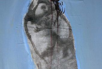 Flo à la corde rouge acry et marouflage sur toile 80x60cm