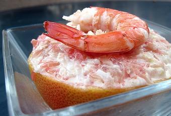 Remplir les coques de pamplemousses (avec ces quantités on en fait 6 à 7).