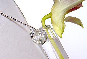 L'artiste se nomme Izik Levy, cet homme (bah oui!) travaille le verre et à eu l'idée étrange et poétique, de créer un pendentif végétal vivant. Vous trouverez toute son oeuvre ICI et LA.