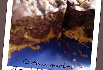 En la cubeta del délicook o el molde verter las dos masas y mezclarlas en espiral con la ayuda de una cuchara (para crear el efecto "marmol"). Regular el délicook sobre Horno, 45 minutos (o entonces horno tradicional). Al final de la cocción desmoldar en un plato. Saborear ligeramente templado o a temperatura ambiente.