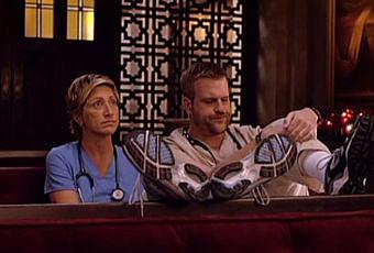 Les choses reprennent aussi leur place à l'hôpital, évidemment : Coop est toujours un petit adolescent attardé, Zoey réfléchit au ralentit mais a toujours bon cœur, Ellie est cynique mais toujours aussi attachée à la famille de Jackie, etc... Comme attendu, Momo a disparu du paysage et il n'y sera fait mention que très rapidement, histoire de donner un semblant de justification ; Thor semble en bonne place pour lui succéder dans le rôle du type avec qui on discute dans la chapelle sans trop vouloir en dire.