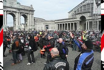 Cela dit, derrière l'aspect revendicatif de ce rassemblement, il y avait le plaisir d’en être, tout simplement. D’abord, d’y être avec ma fille, elle aussi « scooteuse » par tous les temps. Elle voulait en être et m’y a invité. Elle a eu bien raison. Même si nous sommes partis de Wavre sous la pluie et pas trop nombreux (une cinquantaine), c’est quand même grisant de rouler en groupe sur l’autoroute. L’idée était de mener une opération « escargot ». C’est ce que nous fîmes réellement entre les Quatre-Bras de Tervuren jusqu'à l’échangeur de Grand-Bigard. Pendant une trentaine de kilomètres, nous avons roulé à du 70 km/h en occupant toutes les bandes du ring. Belle sensation… et sans réelle rouspétance des automobilistes pris par surprise. La promenade dans la ville qui s’ensuivit fut bien agréable aussi, d’autant plus que la pluie avait cessé. Après, ce fut l’arrivée au Cinquantenaire. Nous étions dans les premiers et c’était une belle atmosphère chaque fois qu’un nouveau groupe arrivait. Il y avait de tout. Il faut bien dire que ma fille et moi, avec nos scooters et notre look un peu BCBG, nous dénotions un peu, mais enfin, les motards, c’est une grande famille quand même !