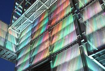 Maurer&Maurer ont basé leur projet sur une fiction, une sorte de conte de fée relatant l’histoire des habitants de cette région, qui ont choisi de dédier un monument à ce bon géant qui les a aidé matériellement et spirituellement. La statue fait 36 mètres de haut, elle a les traits grossiers des premiers robot anthropomorphe : deux bras, une tête des jambes, le tout plutôt cubique. L’homme d’Inden est construit en métal, de la structure au plancher en passant par la résille des parois verticales. 40 000 LED éclaire la tour la nuit, changeant sa couleur et son aspect. C’est apparemment la plus grande façade LED d’Europe à ce jour. L’intérieur offre une multitude d’espaces offrant autant de scènes impressionnantes.