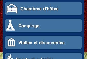 Concernant l’interface, bien qu’assez sobre, elle est simple et comme souvent sur l’iPhone, très intuitive. Ainsi, on me propose le choix entre hôtels, chambres d’hôtes, campings, visites, activités, neige, restaurants, sorties, agenda et offices de tourisme.