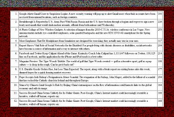 Dave Winer a eu l’excellente idée de se demander quelle était la taille moyenne d’un résumé de news dans le flux RSS du New-York Times en se basant sur les 8279 histoires qu’il avait archivées depuis septembre 2009.