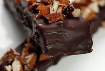 Et quand on ajoute le plaisir à l’équilibre, ça donne de délicieuses barres chocolatées aux éclats d’amandes réalisées à partir de pâte de dattes.